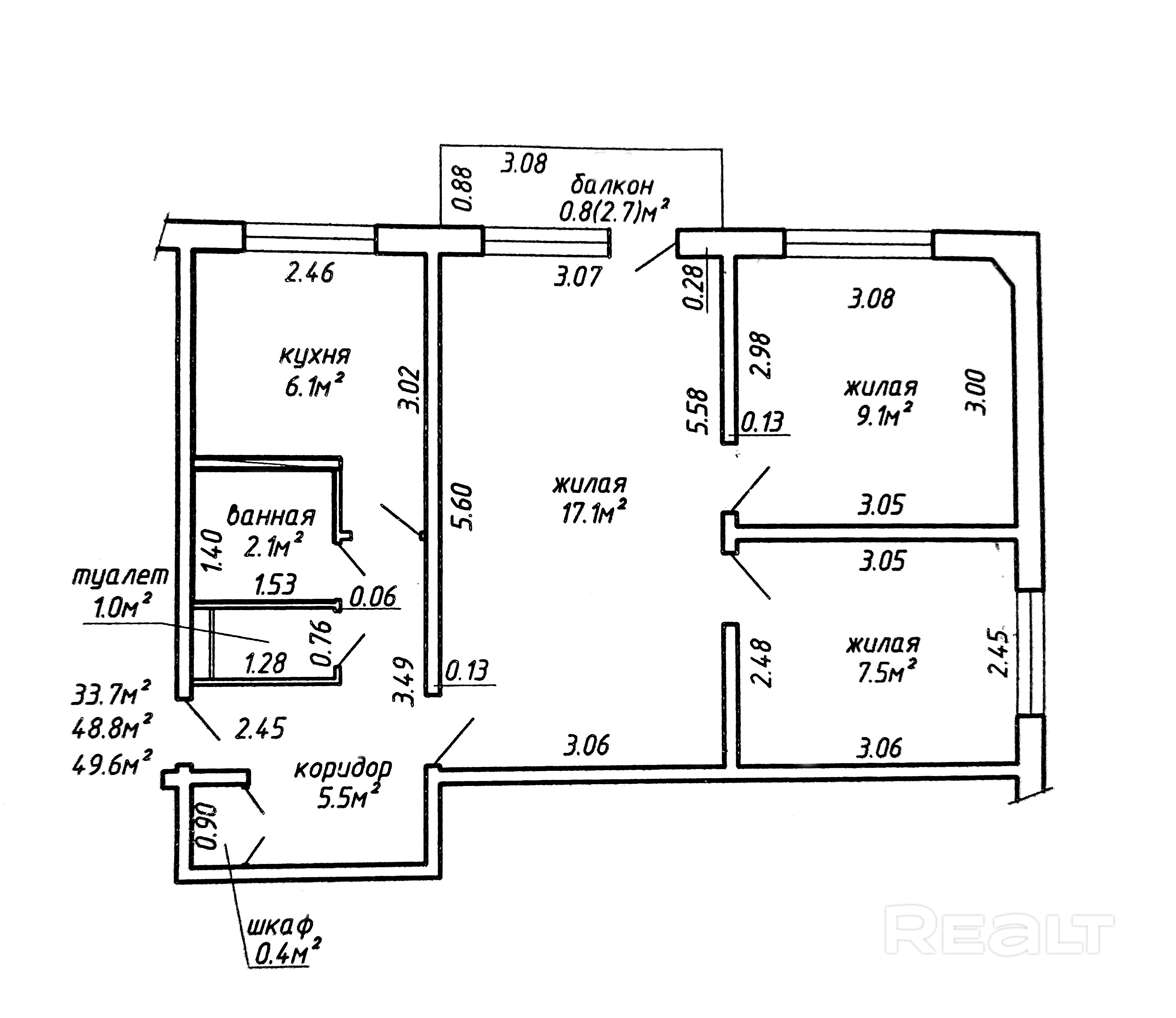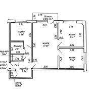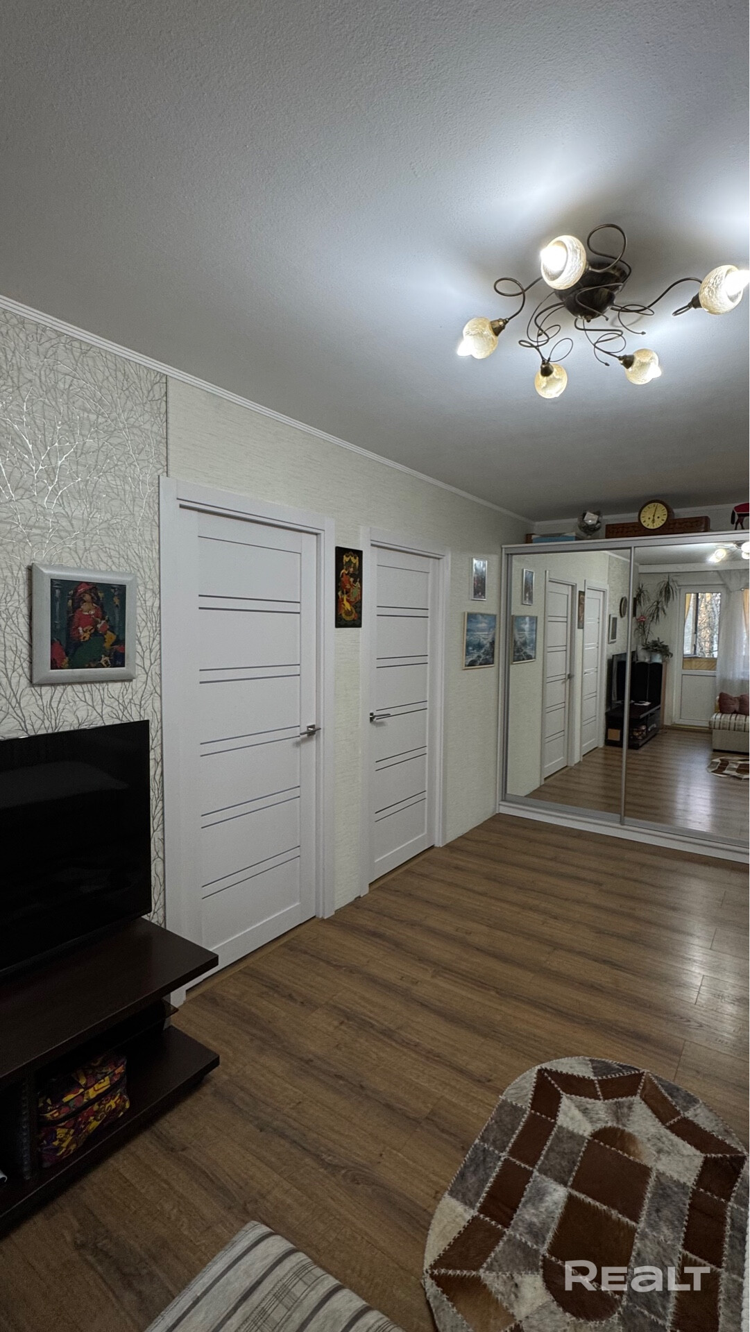 Планировка: две изолированные спальни, просторная проходная гостиная и отдельная кухня. Санузел совмещённый, в коридоре — удобный шкаф-купе. Большой подвал для хранения - примерно 6 м2. Застеклённый балкон.