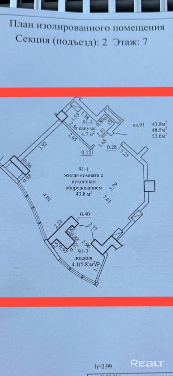 43.8 м²