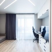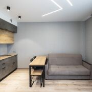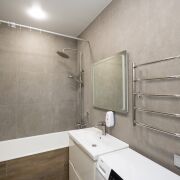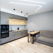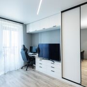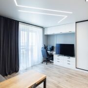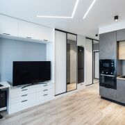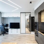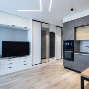 В студии выполнен современный, стильный ремонт с использованием качественных материалов, функциональная кухня, вместительный шкафы, большой совмещённый санузел, просторная застеклённая лоджия.