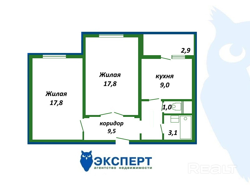 просторная квартира : - две большие комнаты по 17.8 м, -кухня 9м с выходом на лоджию - лоджия с остеклением аккуратный тамбур на две квартиры, стеклопакеты в жилых комнатах.