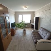 Квартира в отличном состоянии, сделан аккуратный косметический ремонт, новая сантехника и электрика, входная дверь металлическая плюс деревянная, окна – ПВХ, на полах уложен линолеум высокого качества, балкон остеклен. Окна выходят во двор. В стоимость включена мебель и техника.