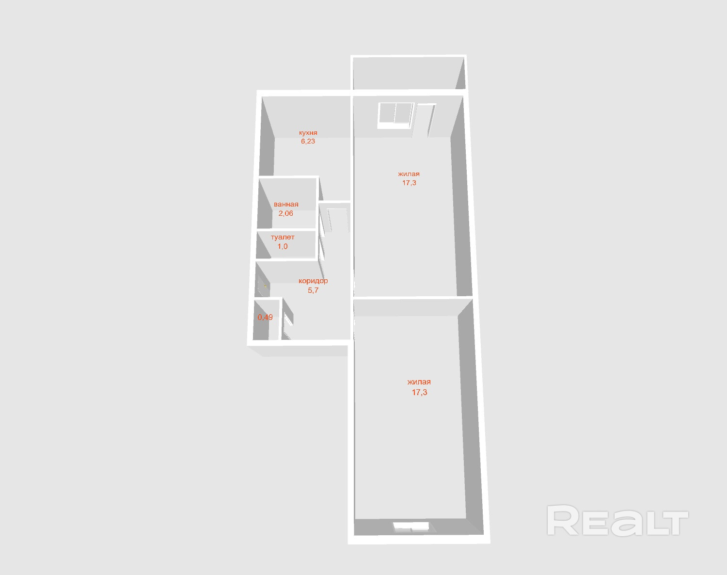 Продуманная грамотная планировка. Жилые комнаты правильной формы 17,3 м2 и 17.3 м2 на две стороны, коридор 5,7 м2, светлая кухня 6,2 м2, раздельный санузел;