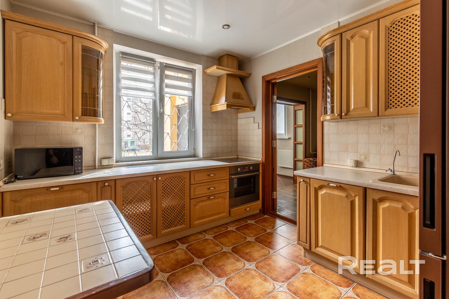 Общая площадь по СНБ — 74 м2. Квартира полностью готова к проживанию: остаётся вся необходимая мебель и техника, включая холодильник, морозильную камеру, стиральную и сушильную машины. Установлены качественные межкомнатные двери из натурального дерева, удобная кровать из массива, двуспальный диван и функциональная кухня.