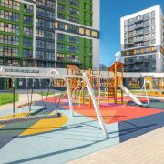 Спортивные площадки, вело парковки и благоустроенные дворы.