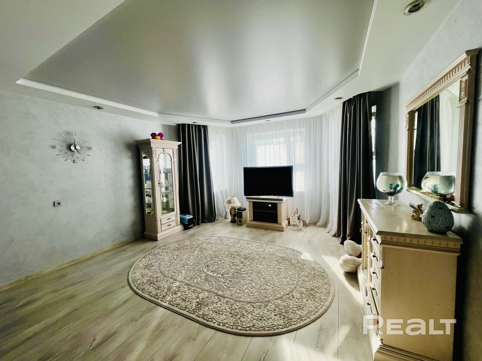 В квартире выполнен ремонт, натяжные потолки,пол ламинат и плитка, стены окрашены, комнаты выходят на одну сторону - во двор дома. Продажа с мебелью. В квартире также имеется гардеробная и два встроенных шкафа купе.