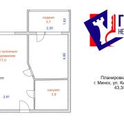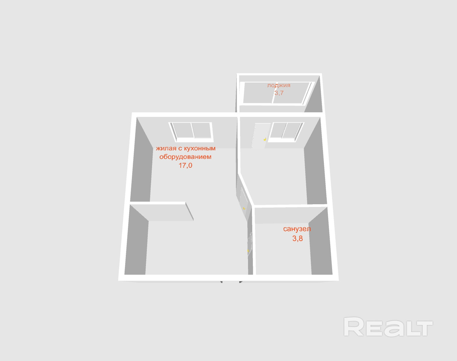 Евродвушка с отдельной спальней и просторной гостиной-кухней (17 м2).