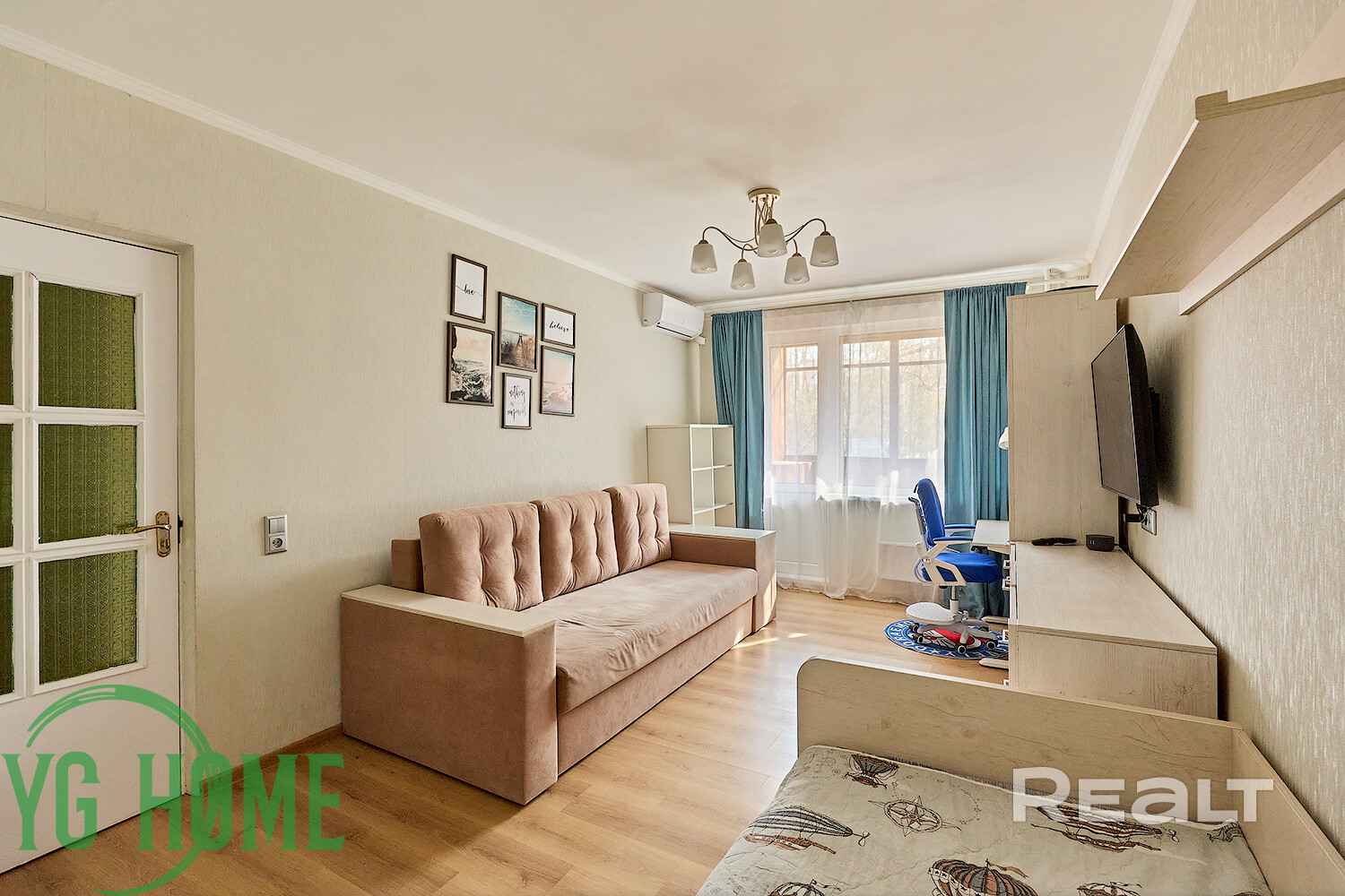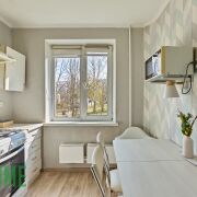 Квартира готова к проживанию. Состояние жилое - окна ПВХ, на полу ламинат/линолеум/плитка, установлена металлическая входная дверь, ванная/туалет облицованы плиткой, лоджия просторная, обшита вагонкой. В квартире остаются встроенный кухонный гарнитур, газовая плита, вытяжка, шкаф-купе в гостиной и коридоре. Окошки квартиры выходят на Восток. Квартира очень теплая.