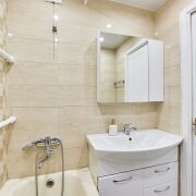 Дом расположен во дворах и закрыт от активного движения дорог. При этом в шаговой доступности есть всё необходимое: школы, гимназии, детские сады, детская и взрослые поликлиники, частные медцентры, СК М.Мирного, многочисленные продуктовые магазины, рынок Максимус, банки, аптеки, парикмахерские и многое другое для комфортной жизни.