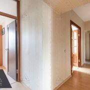 Общая площадь составляет 65 квадратных метров. Планировка отличается удачным зонированием и включает три изолированные жилые комнаты, раздельный санузел и просторный коридор с местами для хранения вещей. Кухня большая и оборудована мебельным гарнитуром.