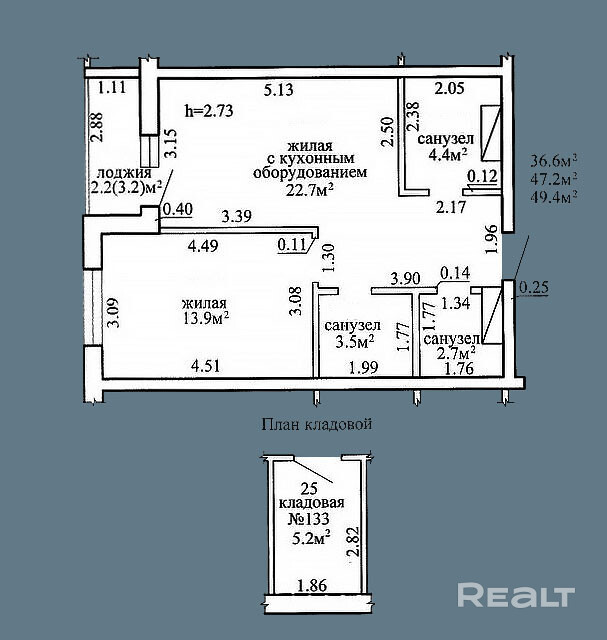 49.4 м²