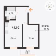44 м²