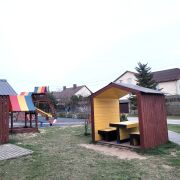 Оборудованная детская площадка, при дворовая парковка, огороженная территория, видеонаблюдение.