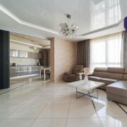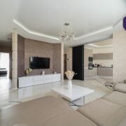 В отделке использованы только импортные материалы, вся мебель изготовлена по индивидуальному заказу.