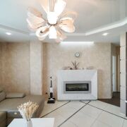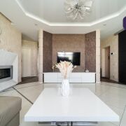 В гостиной установлен электрический камин, создающий неповторимую атмосферу домашнего тепла.