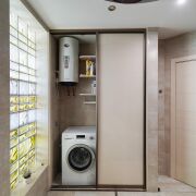 В ванной комнате грамотно выделена постирочная зона, где размещены стиральная машина и бойлер (вы забудете о сезонных отключениях воды).