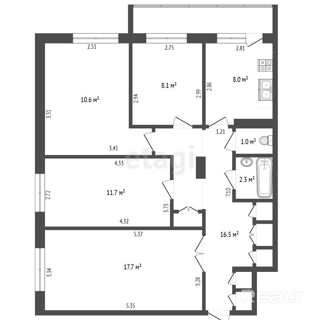 Вместительный коридор (16,5 м2) оборудован системой хранения. Установлены современные стеклопакеты: тепло зимой, тишина и защита от пыли круглый год.