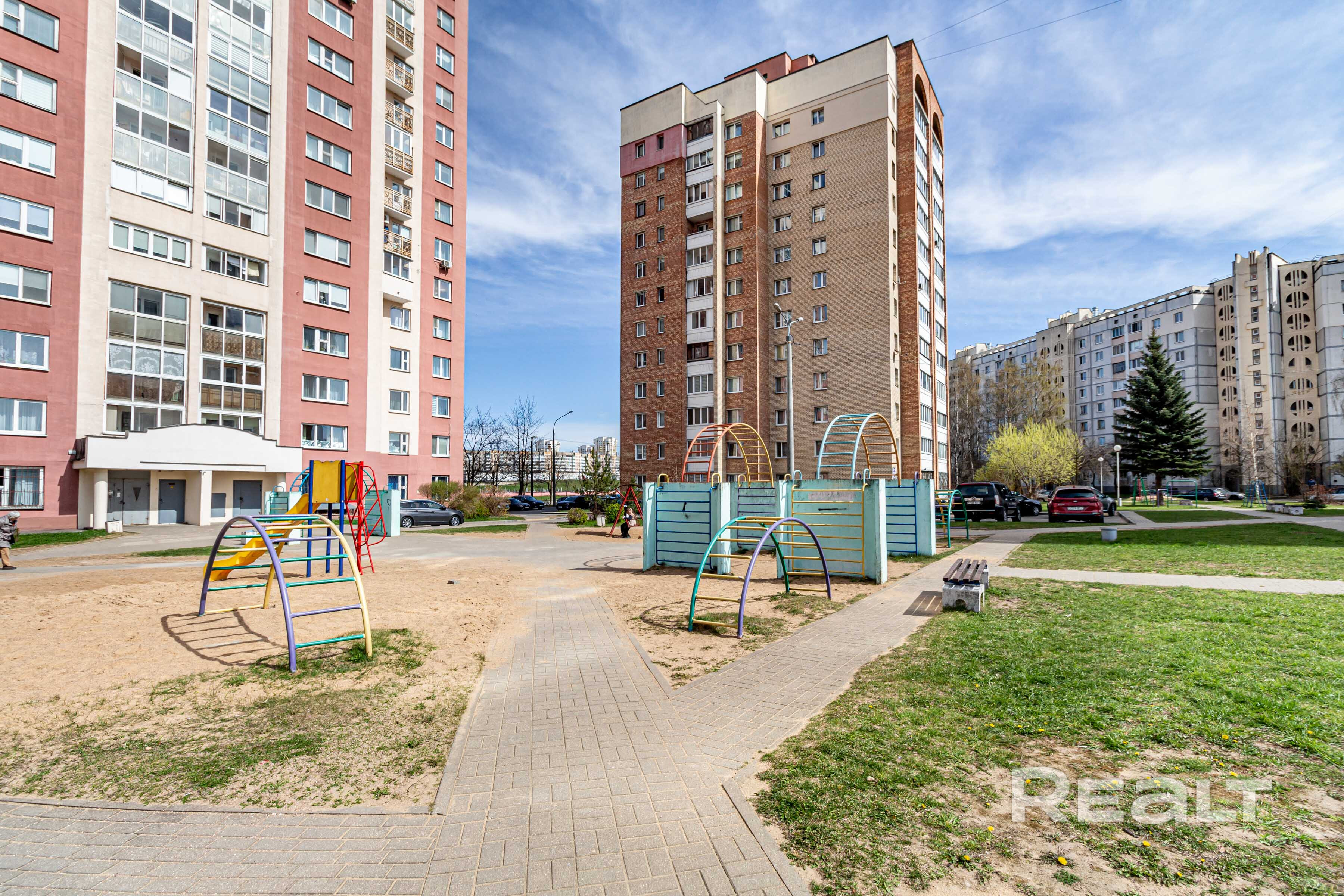 Несколько детских садов, общеобразовательные школы и гимназии в радиусе 500–800 м. Супермаркеты «Евроопт», «Санта», гипермаркеты, ТЦ («Palazzo», « Замок», « Скала»), аптеки, банки, пункты выдачи маркетплейсов.