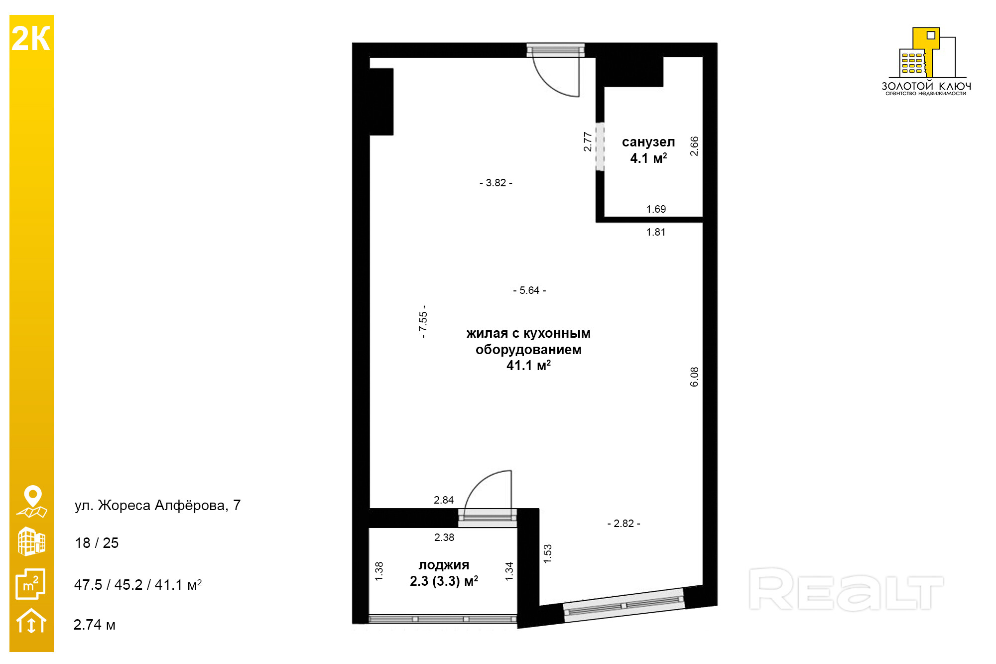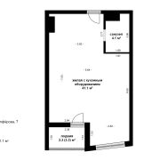 Общая площадь по СНБ — 47,5 м2, жилая с кухонной зоной — 41,1 м2.