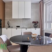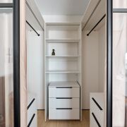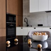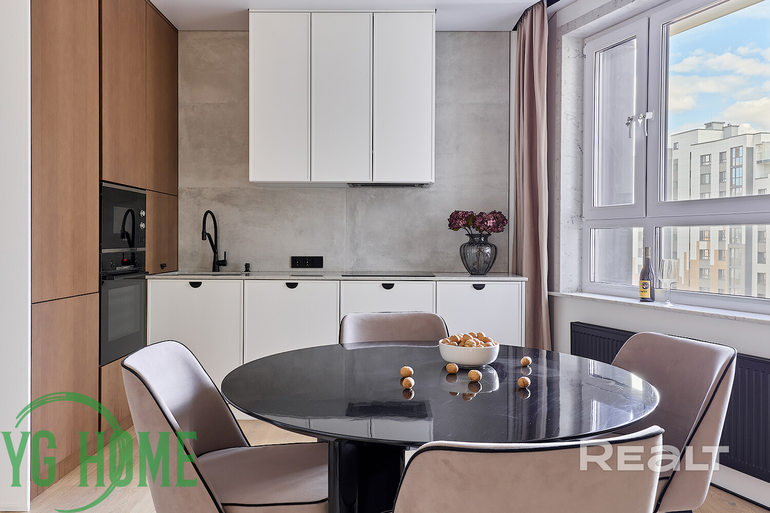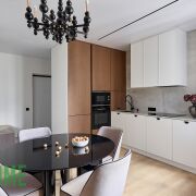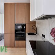 Фасады кухни и прихожей - шпон/краска, доводчики и механизмы – Blum, столешница/подоконники – кварцовый камень.
