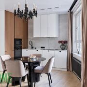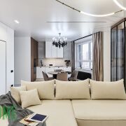 Встроенная кухня оборудована всем необходимым - бытовая техника Bosch: варочная панель, духовая печь, микроволновка, посудомоечная машина, холодильник.