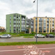 Трехподъездный ситихаус высотой от 3 до 4 этажей расположен на закрытой территории рядом с двухэтажными Лайнхаусами.