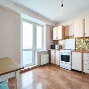Кухня 9,4 м2 с выходом на застекленную лоджию. Кухня оборудована необходимым числом мебели и техники.  Площадь позволяет с комфортом собираться за столом всем членам семьи. Лоджию можно использовать как дополнительное место отдыха, оборудовать рабочее место, либо сделать местом хранения.