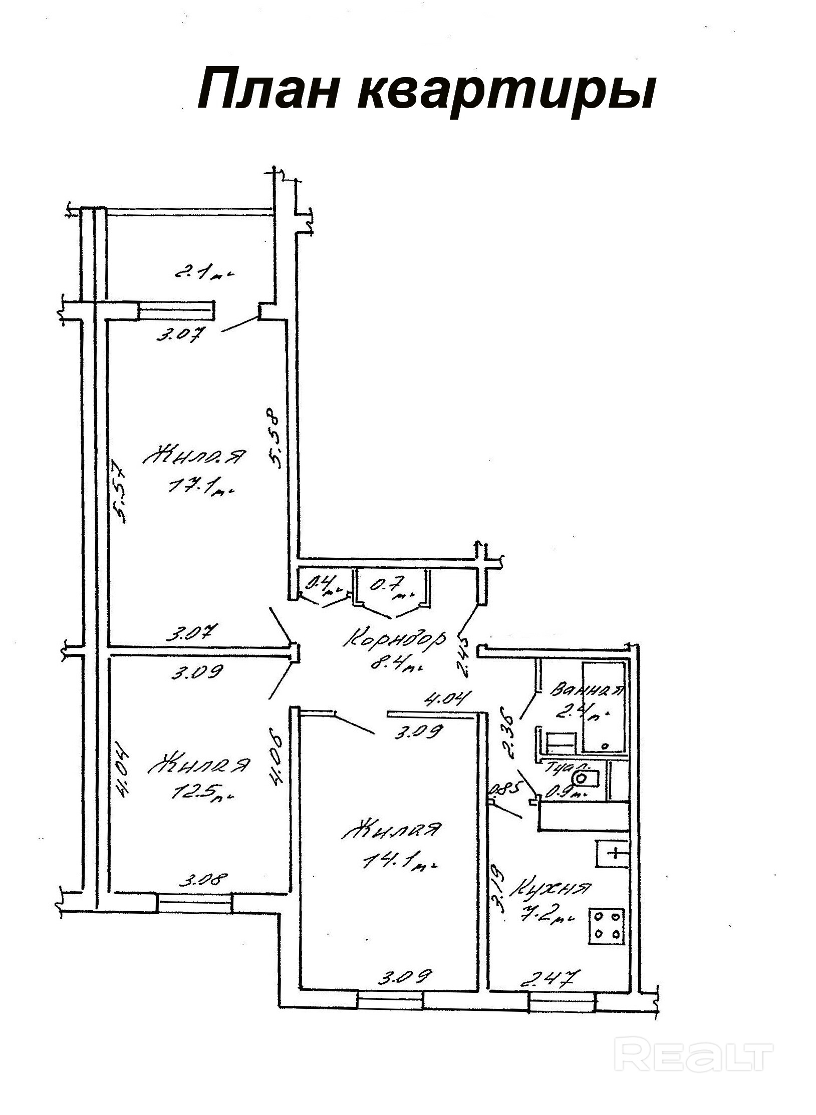 Трехкомнатная квартира в районе с развитой инфраструктурой и в шаговой доступности от метро Уручье.