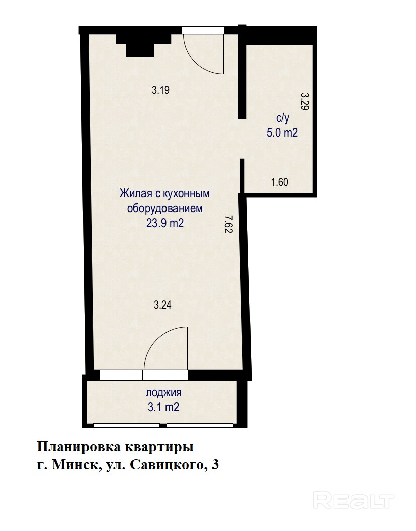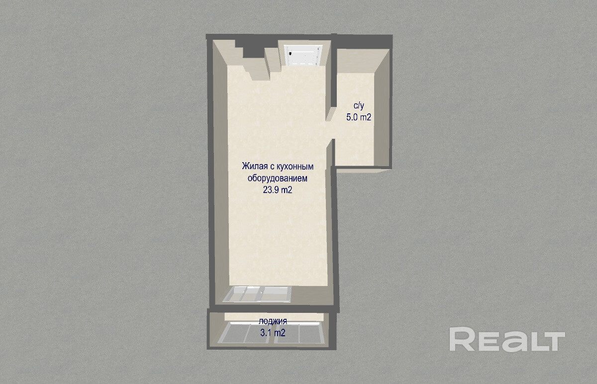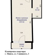 Студия с эргономичной планировкой в современном и перспективном районе г. Минска. Общая площадь – 28.9 м.кв. (по СНБ 31.1 м. кв.), жилая 23.9 м. кв.