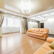 -В прихожей, кухне и санузлах - напольное покрытие представлено качественным кафелем, в жилых комнатах - уложен ламинат премиум класса.