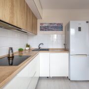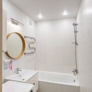 Квартира полностью готова к проживанию укомплектована всей необходимой мебелью и техникой. На кухне установлена встроенная техника — духовой шкаф, варочная поверхность, посудомоечная машина и микроволновая печь.