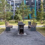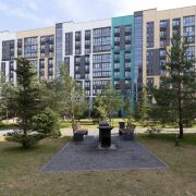 Закрытый двор объединяет несколько домов и предлагает жителям современные зоны отдыха детские и спортивные площадки, воркаут-зону, места для барбекю, мини-огороды и большое количество зелени. Рядом расположен живописный хвойный лес и доступна чистая артезианская вода.