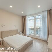 А теперь о квартире: просторная видовая двухкомнатная квартира (кухня-столовая 15м2 и гостиная-спальня 26 м2), имеет угловое расположение, благодаря этому открывается прекрасный вид из панорамных окон на разные стороны света с высоты крайнего 25 этажа. Высокие потолки 3,0 метра наполняют пространство воздухом и еще более дополняют ощущение простора.