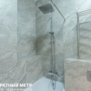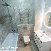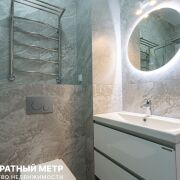 Просторный совмещенный санузел 4,2 м2. с инсталяцией, тропическим душем и зеркалом с подсветкой, облицован стильным строгим керамогранитом.