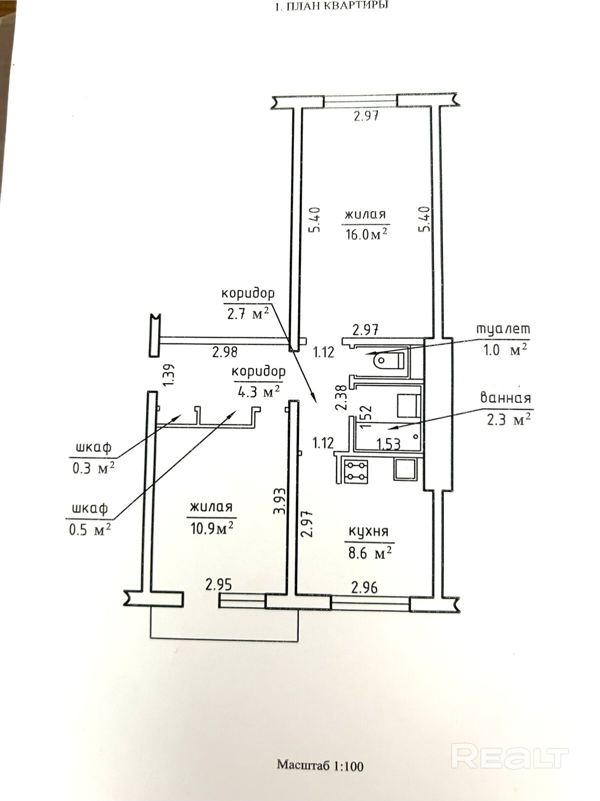 • Жилые комнаты: 16 м2 и 10,9 м2 (с выходом на балкон).