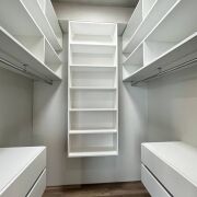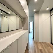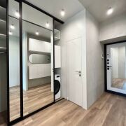 Системы хранения: 2 гардеробные (в каждой комнате) + 3 встроенных шкафа (в прихожей и скрытый шкаф в зале) + 2 навесные тумбы
