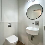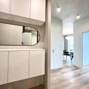 + первый этаж этого дома отличается дизайнерским лобби с зоной ожидания, туалетной комнатой с пеленальным столиком, помещением для хранения велосипедов и детских колясок, местом для мытья лап домашних животных.
