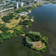 Все достопримечательности рядом: водоём, парк, арена.