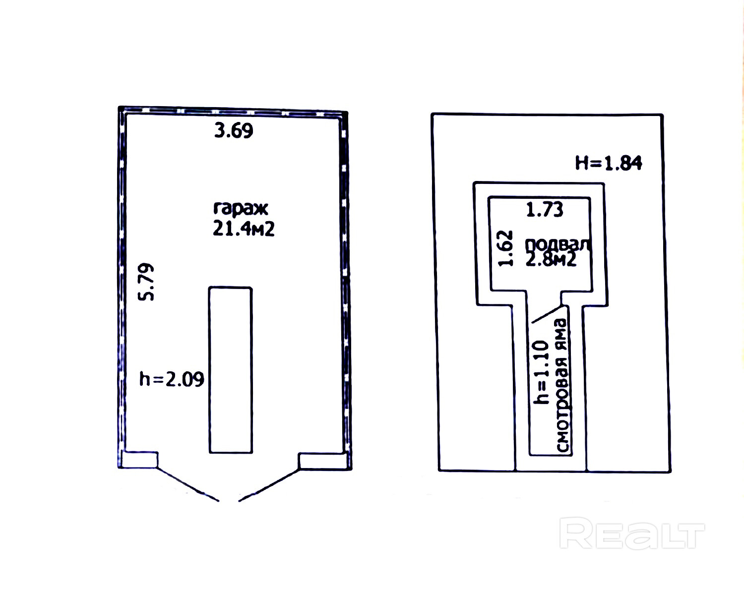 Гараж кирпичный 21.4 кв.м. со смотровой ямой и подвалом-кладовкой 2.8 кв.м.