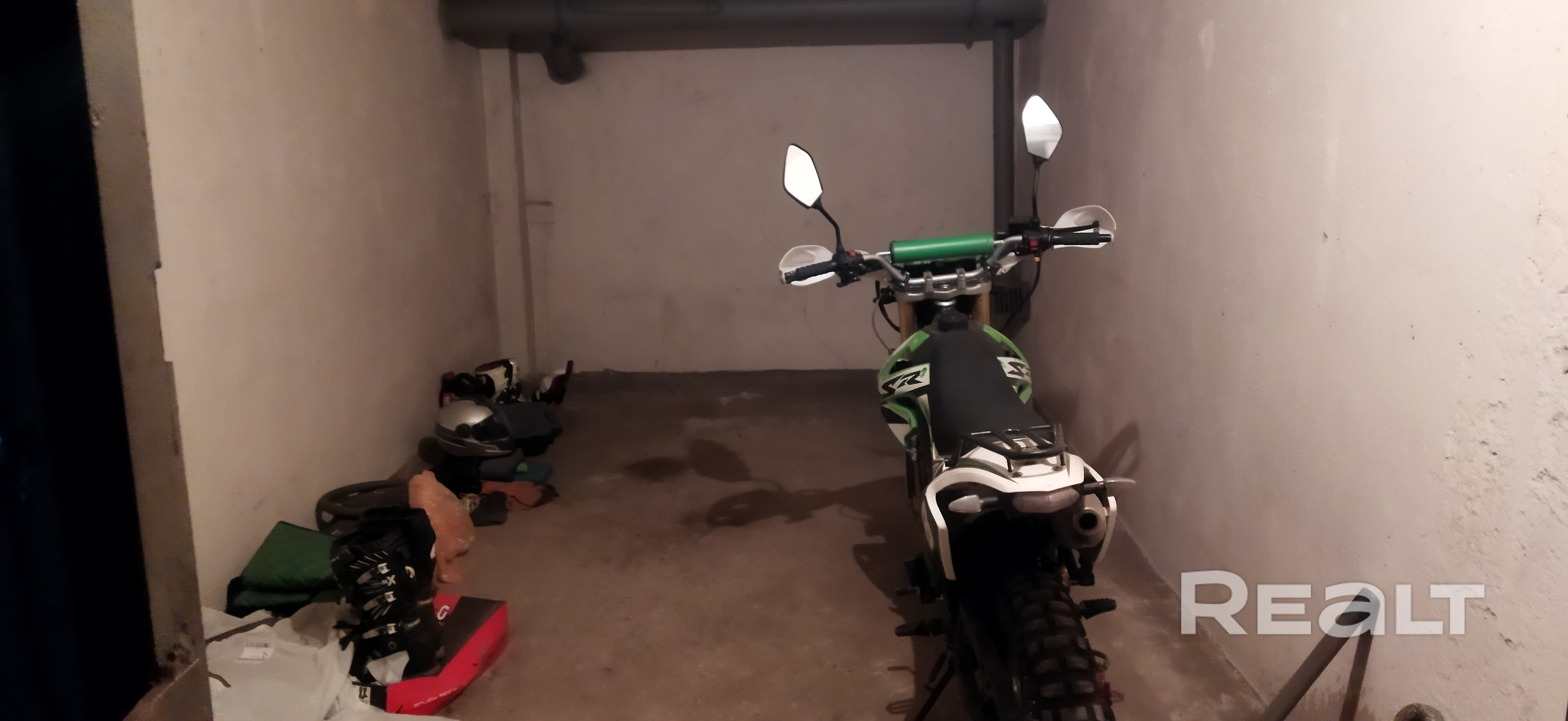 Сухой,чистый,в середине здания, удобно съезжать,хранился мотоцикл.