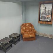В гараже выполнен качественный ремонт: оштукатурены и покрашены стены, потолок и пол. На полу сделана стяжка, покрашенная резиновой краской. Двери утеплены и окрашены. Установлены подвесные полки на химические анкеры для удобного хранения инструмента и других вещей.