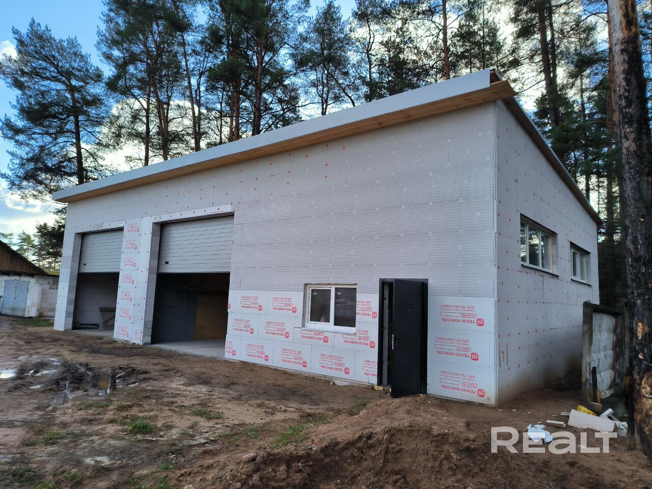 Большой гараж под СТО 252м.кв. в аг.Раков (30км от МКАД по Гродненской трассе). В здании: 2 бокса с ролетными воротами (40 и 50м.кв., h=5м); административные помещения (26, 12, 25, 23м.кв.); подвальное помещение - склад (50м.кв., h=2.5м); подсобные помещения (раздевалка, помещения для душа, туалетов и умывальников). Подведены вода и электричество. Канализация местная (3 кольца). Стены - ГСБ с утеплением пеноплексом, кровля - металлочерепица. Расположение прямо у трассы М6. Парковка перед СТО.