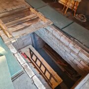 Гараж гспк Лесной. Кирпичный, потолок дерево, пол бетонный, большая яма и глубокий подвал, высокие ворота. Сухой , с хорошей вентиляцией.