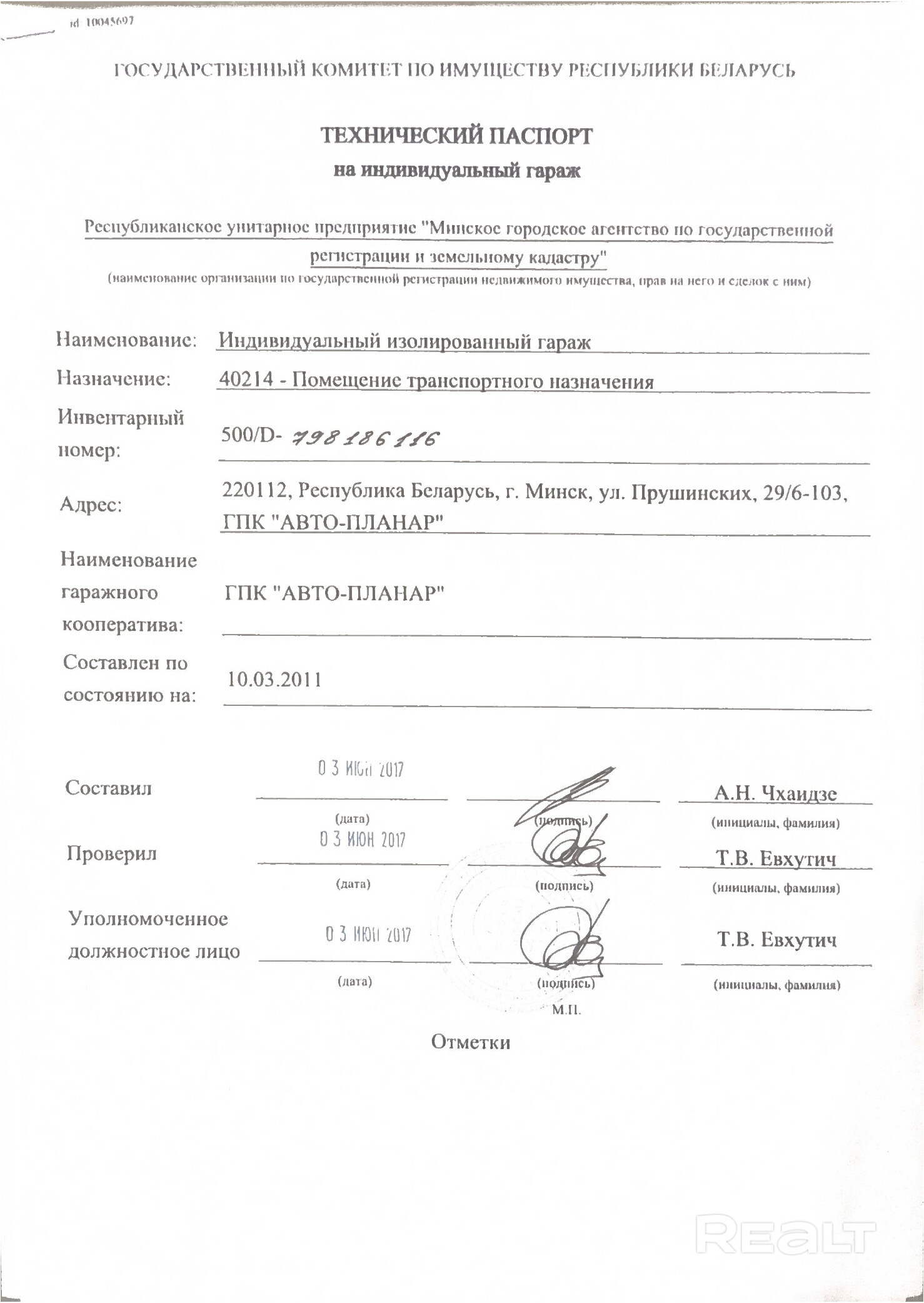 Купить гараж, г. Минск, ул. Прушинских, 29/3