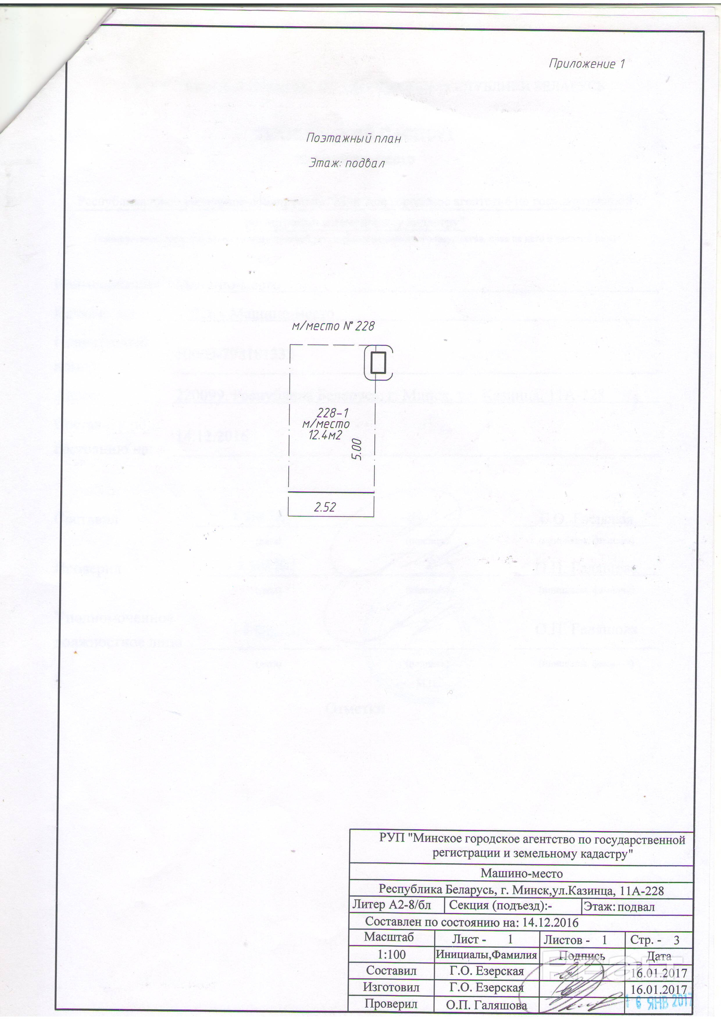 Машиноместо в подземном паркинге по адресу Казинца 11А, место 60