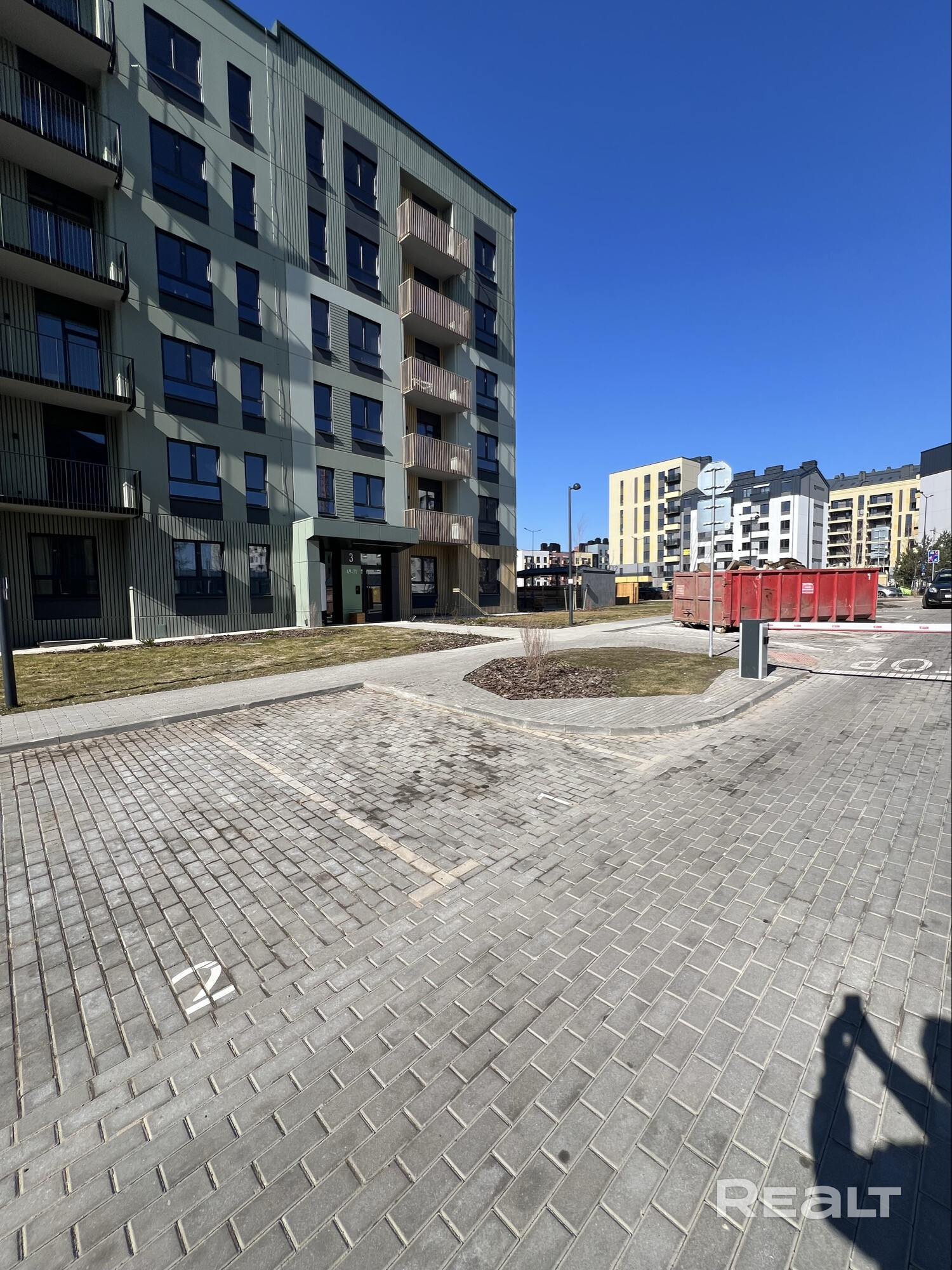 Парковочное место имеет удобное расположение, в самом начале парковки, сразу за шлагбаумом, угловое, без соседа с одной стороны.