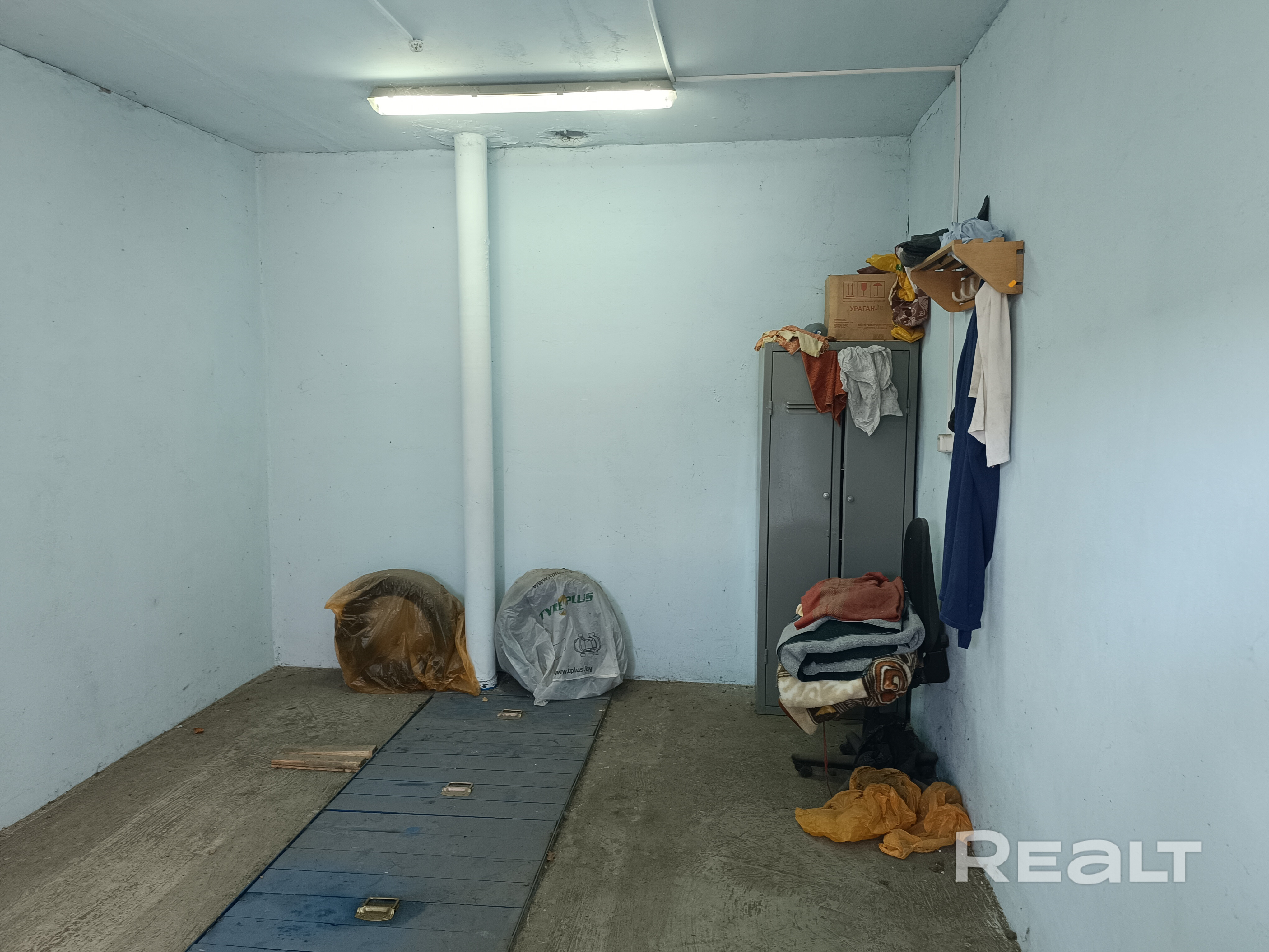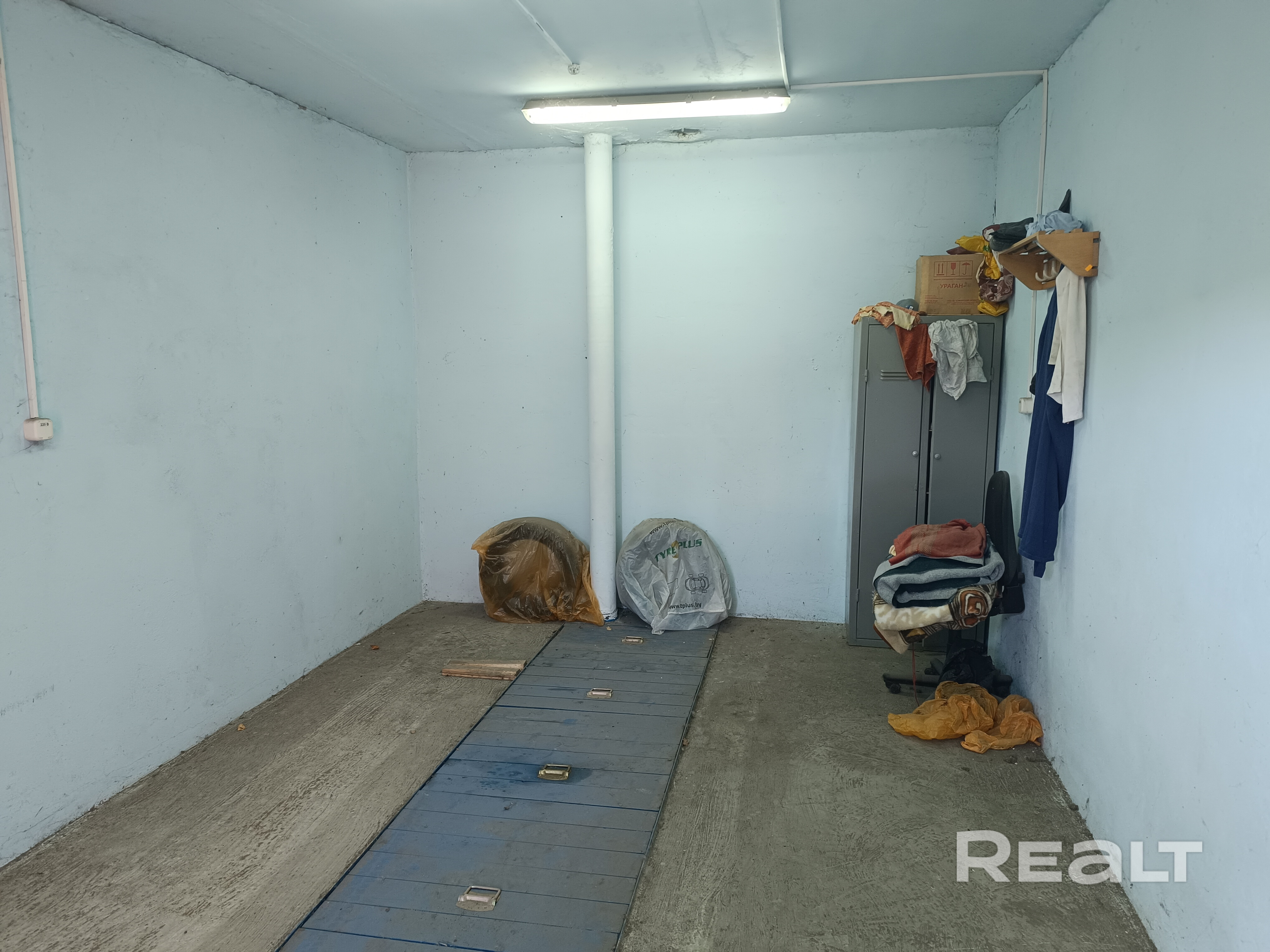 Гараж оштукатурен и покрашен. С подвалом. Есть вентиляция. 3 потолочных светильника. В гараже нет никаких стеллажей. P.S. Посредников просьба не беспокоить.