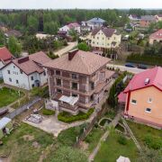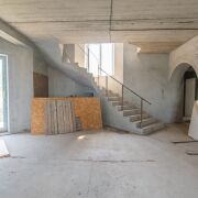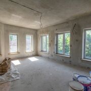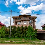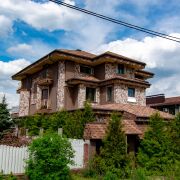 Дом кирпичный, что обеспечивает отличную тепло- и шумоизоляцию, построен в 2021 году. Снаружи стены (600мм) утеплены (100мм) и отделаны декоративным камнем. Общая площадь здания 630,4 м2. Фундамент – ФБС, перекрытия железобетонные, крыша – битумная черепица. На окнах ПВХ-профиль (почти все эркерные и французские), подоконники из натурального камня, полы залиты черновой стяжкой. Входная дверь металлическая. Межкомнатные двери отсутствуют. Высота потолков 1,2 этажи и подвал составляет 3,2 м2, 3 этаж 3м2. На первом этаже установлен камин, дымоход проведен на каждом этаже. Вентиляция с естественным побуждением.