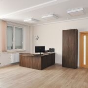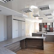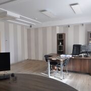 В офисе 5 кабинетов с большим просторным проходным помещением- залом, имеется несколько подсобных помещений.