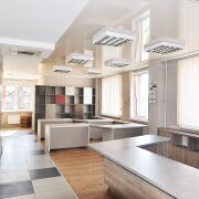Отдельное небольшое помещение для приёма пищи, в офисе есть горячая вода, отопление от жилого дома.
