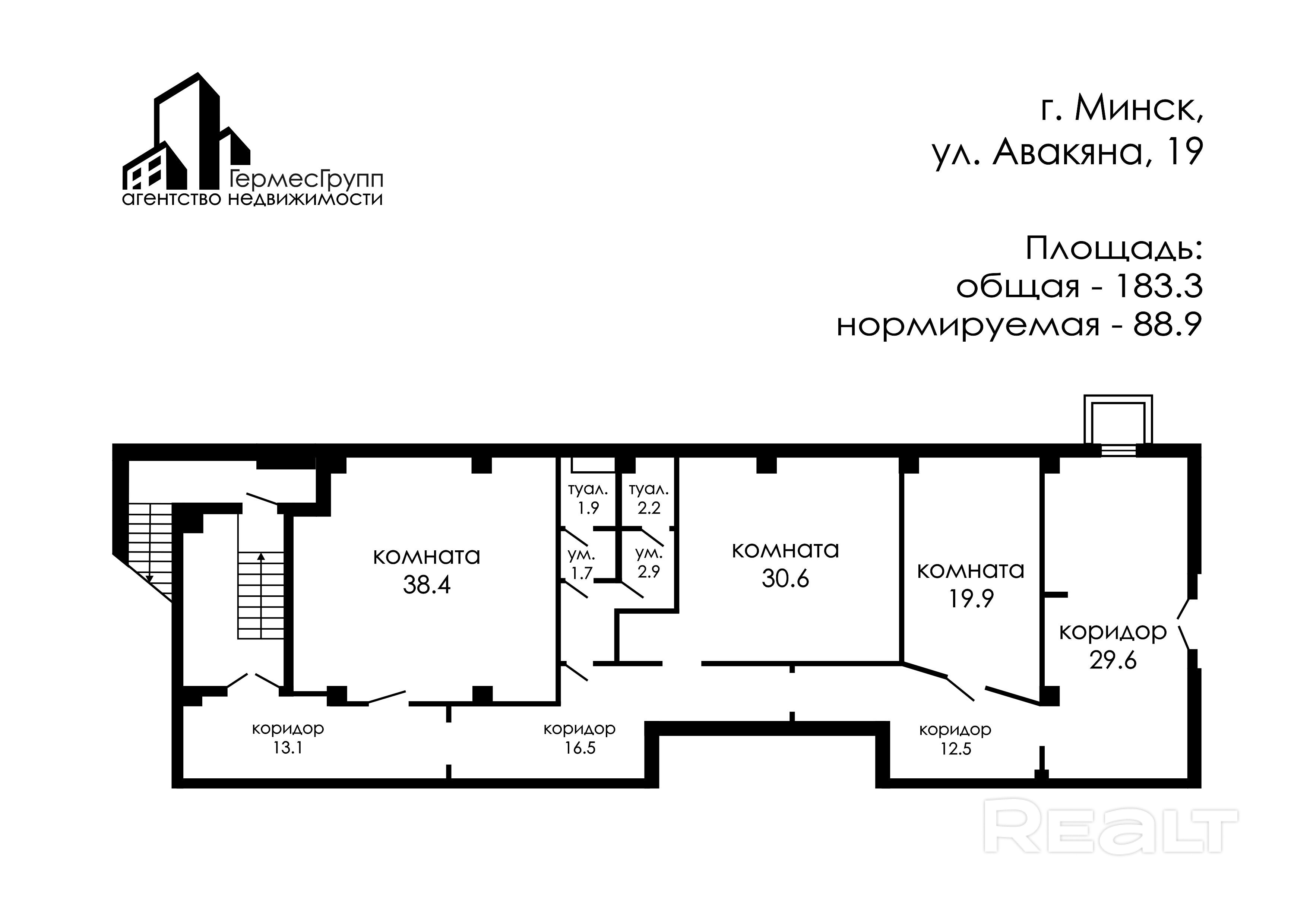 Продается административно-складское помещение в г. Минске по ул. Авакяна,19. Площадь - 183,3 м2, нормируемая площадь - 88,9 м2.